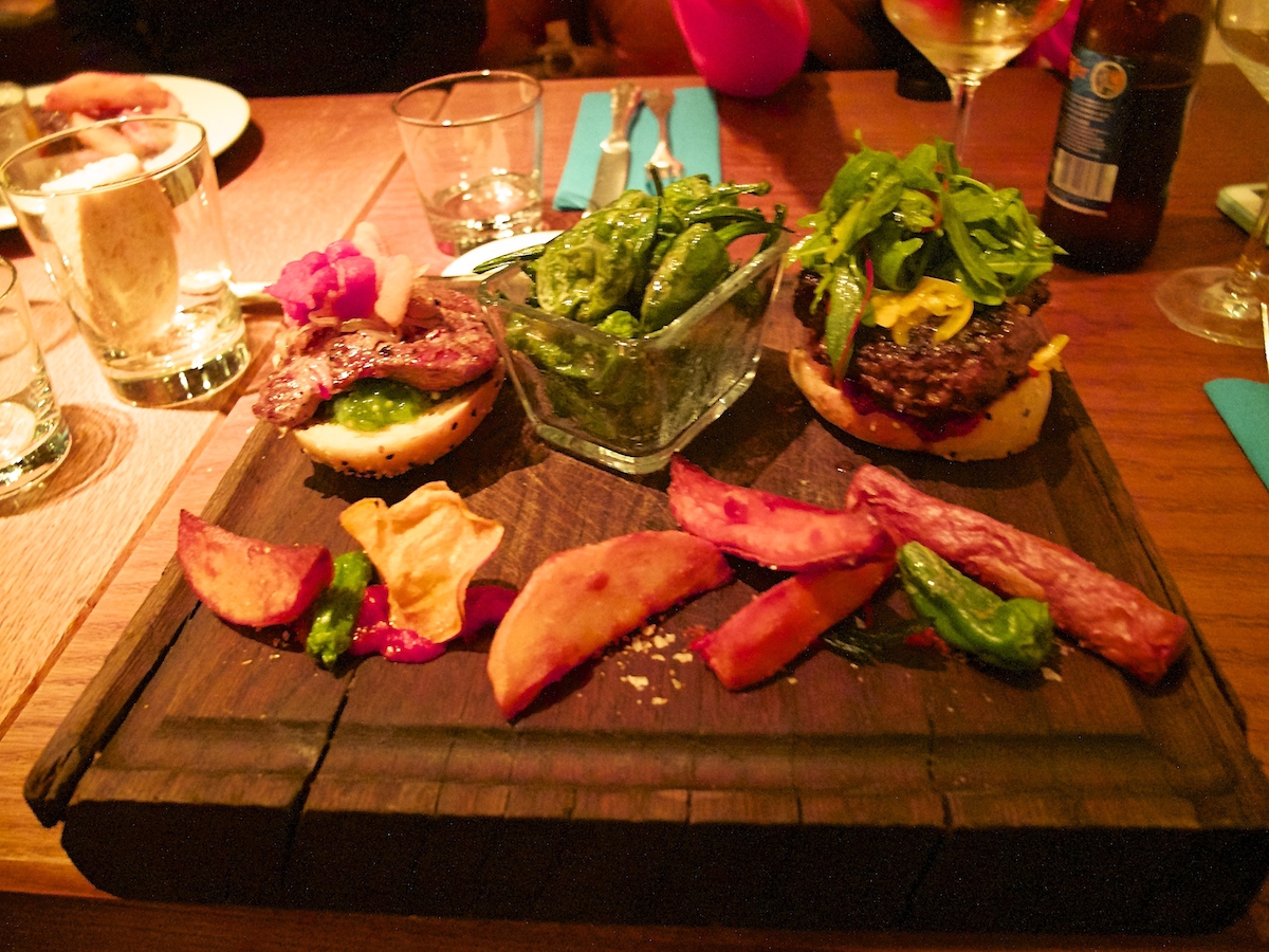Es gibt eine Standardkarte und eine wöchentliche Menükarte. Die Besitzer haben nicht nur die Einrichtung durchdacht, nein, auch die Gerichte haben teilweise ziemlich kreative Namen. Ich entschied mich für Princess and the pea und die anderen beiden wählten Twohundred and Twenty und einen Bison Burger Deluxe (okay, der Name ist jetzt nicht so ganz kreativ). Die Gerichte lagen zwischen 14,00 EUR und 23,00 EUR – durchaus angemessen.