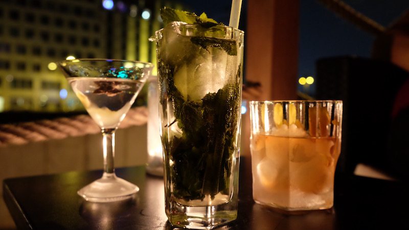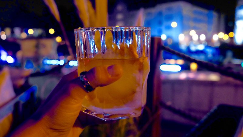 Wir bestellen uns einen Mojito, einen Swedish Cocktail und einen Old Fashioned. Eigentlich auch noch ein Schöfferhofer Grapefruit, aber die Qualität des Biermix-Getränks ist nicht abhängig von der Mix-Kunst der Bar, daher nicht soooo erwähnenswert. Die meisten Cocktails liegen bei etwa 9-14 EUR.