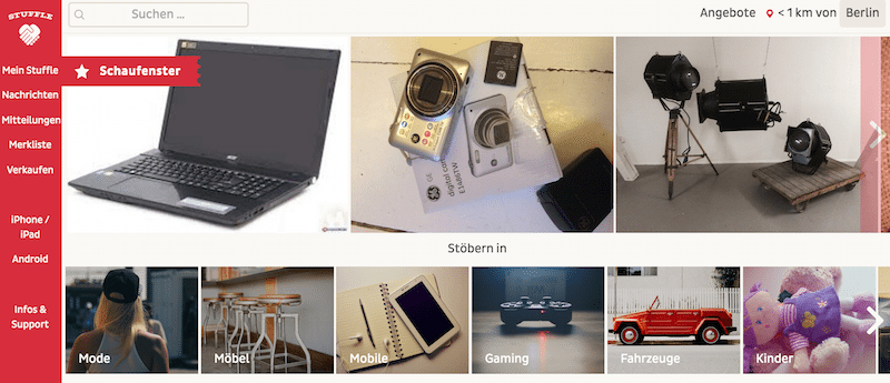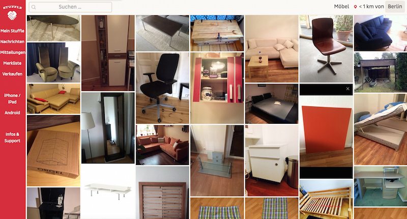 Wir haben Stuffle dann immer weiter entwickelt und vor allem an der Usability geschraubt. Anfangs waren wir nur mobil unterwegs und dem Benutzer wurden Ergebnisse auf Basis seinen Standortes angezeigt. Wir haben einfache Zahl- und Versandbedingungen und konnten uns dadurch, zumindest damals, von eBay Kleinanzeigen sehr gut abheben.
