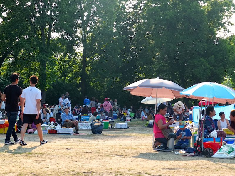Der Thai Park hat eigentlich immer “offen”, wenn das Wetter gut ist, aber klar, am Wochenende ist es am schönsten. Der Park ist voll mit Menschen, alle sind mega gechillt und lassen sich die Sonne aufs Bäuchlein scheinen. Die Atmosphäre ist so angenehm, dass man locker den ganzen Nachmittag dort verbringen kann. Ein paar Karten oder, was auch immer euren Beschäftigungstrieb besänftigt, Sonnencreme, eine Decke und fertig ist das kleine Paradies.