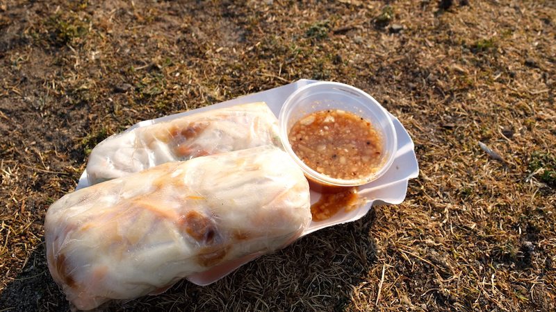 Viel authentischer geht es wohl kaum. Es gibt so viele Stände mit “asiatischen Muttis”, die euch mit diversen Varianten asiatischer Küche versorgen. Von Frittiertem, über Sommerrollen & Fleischspießen, hinzu Mango- oder Papayasalat. Gerade letzteres ist wirklich lecker. Papayasalat mag ich eh super gerne und dort bekommt ihr wohl einen, der besten der Stadt. Wenn ihr keine kleinen Fischis oder Garnelen drin haben wollt, die klassischer Weise dazu gehören, sagt vorher Bescheid. Auch die Schärfe solltet ihr vorher definieren ;) Selbst uns brannte ein wenig die Zunge als wir alles aufgeputzt hatten.. und wir mögen scharfes Essen.