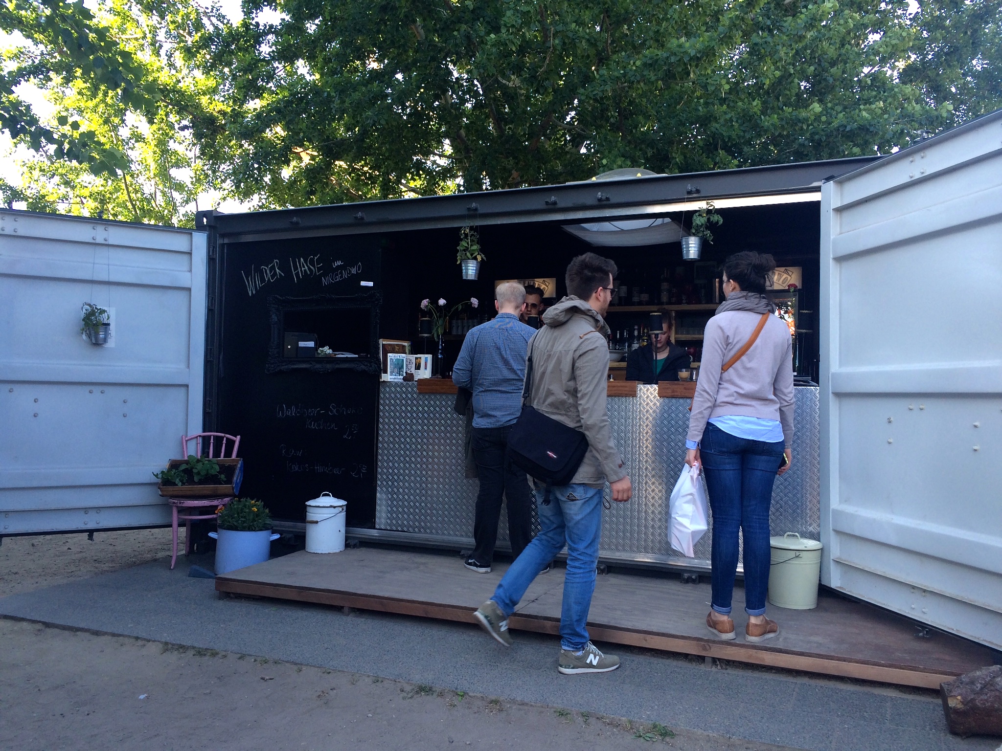 Am Gleisdreieck hat sich BRLO ein kleines Container-Schloss gebaut. Auch wenn es von innen wunderschön ist, so zieht es einen im Sommer natürlich eher nach draußen. Holzpodeste und massive Bierbänke führen den Sinn für Ästhetik auch im Biergarten fort. Der halbe Liter Craft Beer vom Fass startet bei 4,50 EUR, geht dann aber auch je nach Sorte hoch bis auf 9,80 EUR. Da sich nebenan das Restaurant befindet, wird man auch kulinarisch bestens versorgt. Ach, und Eis gibt es auch!