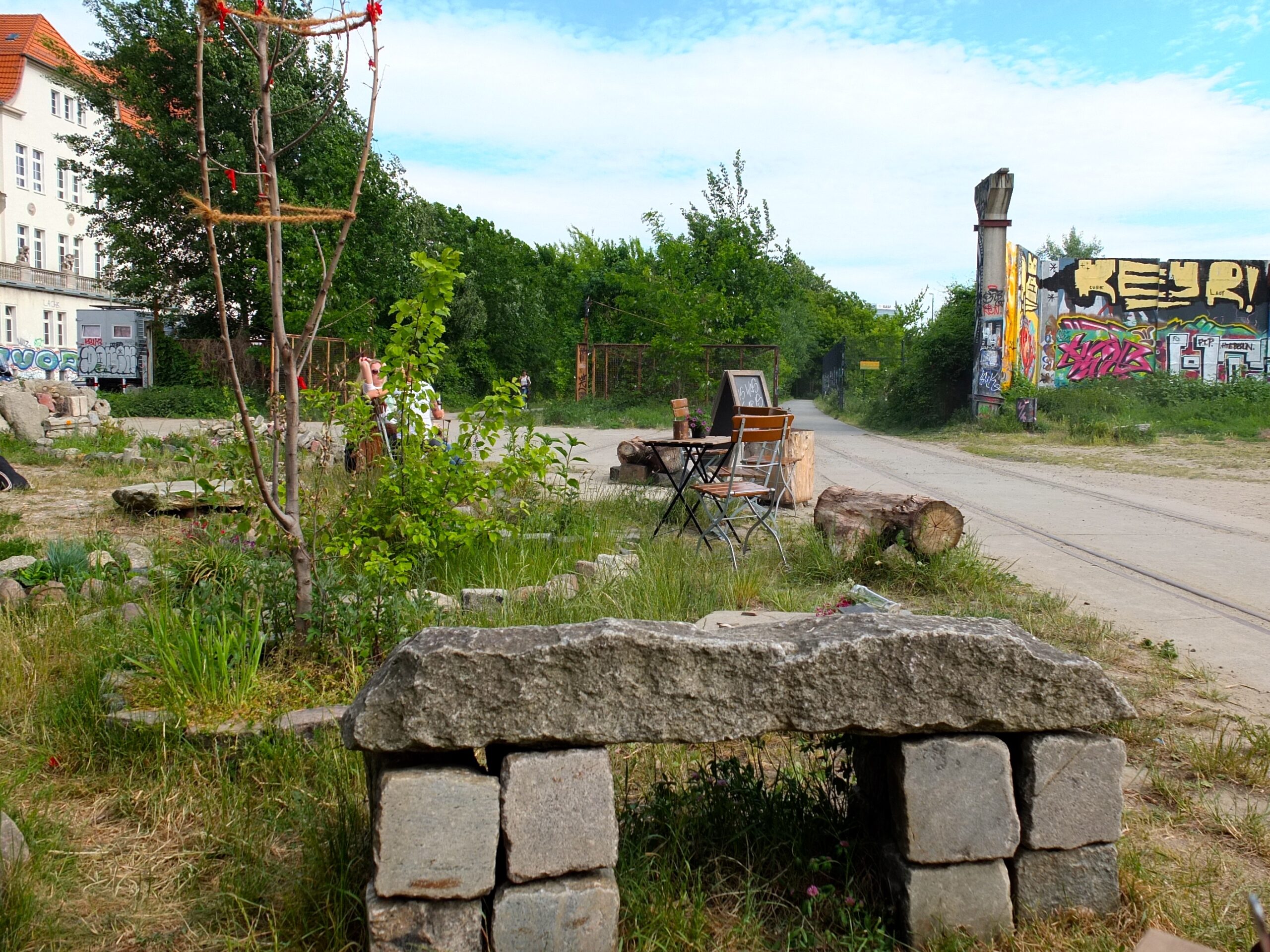 Der Wilde Hase im Nirgendwo ist eine kleine Oase ganz in der Nähe des Berghains. Es wirkt tatsächlich wie ein großer Garten draußen auf dem Dorf. Außen hast du jede Menge Sitzplätze im recht wild gewachsenen Garten. Innen gibt es einen Bereich mit Hängematten und Feuerstelle. Zudem ist alles, was dort serviert wird vegan. Wirklich alles. Es ist für mich eine dieser kleinen Fleckchen, die Berlin ausmacht. Es hat irgendwie so ein Flair, als würden Freunde dich auf ihr Grundstück einladen. Manchen mag das nicht so behagen, ich hingegen finde es großartig.