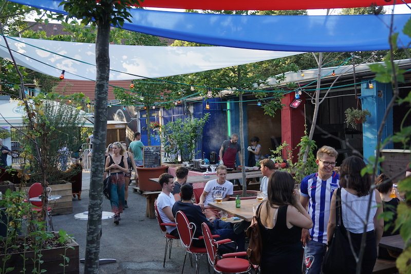 Zwischen den Zuckerbauten der Karl-Marx-Allee öffnet jedes Jahr das James June mit dem ersten Sonnenstrahl seine Pforten. Neben frisch gezapftem Bier, gibt es auch verschiedene Flaschenbiere und eine Speisekarte mit Burgern und weiteren Snacks. Besonders schön ist zum einen die Rasenfläche und zum anderen die Liegeflächen, auf denen es sich unfassbar gut chillen lässt… und bei klarem Nachthimmel kannst du Sterne gucken.