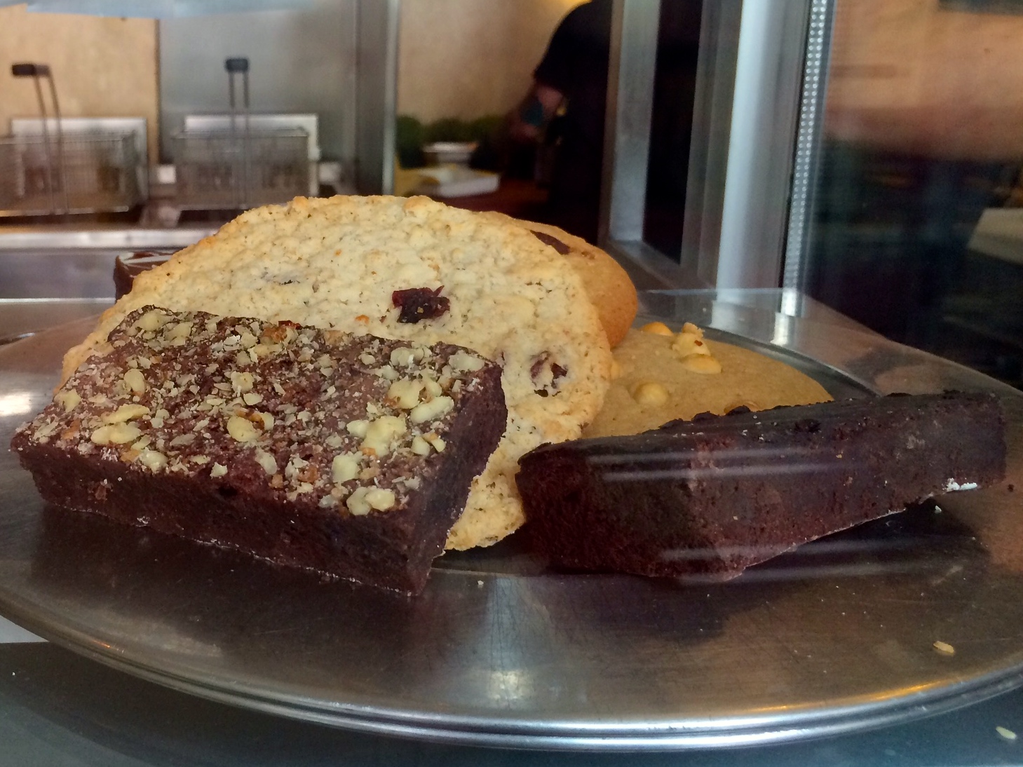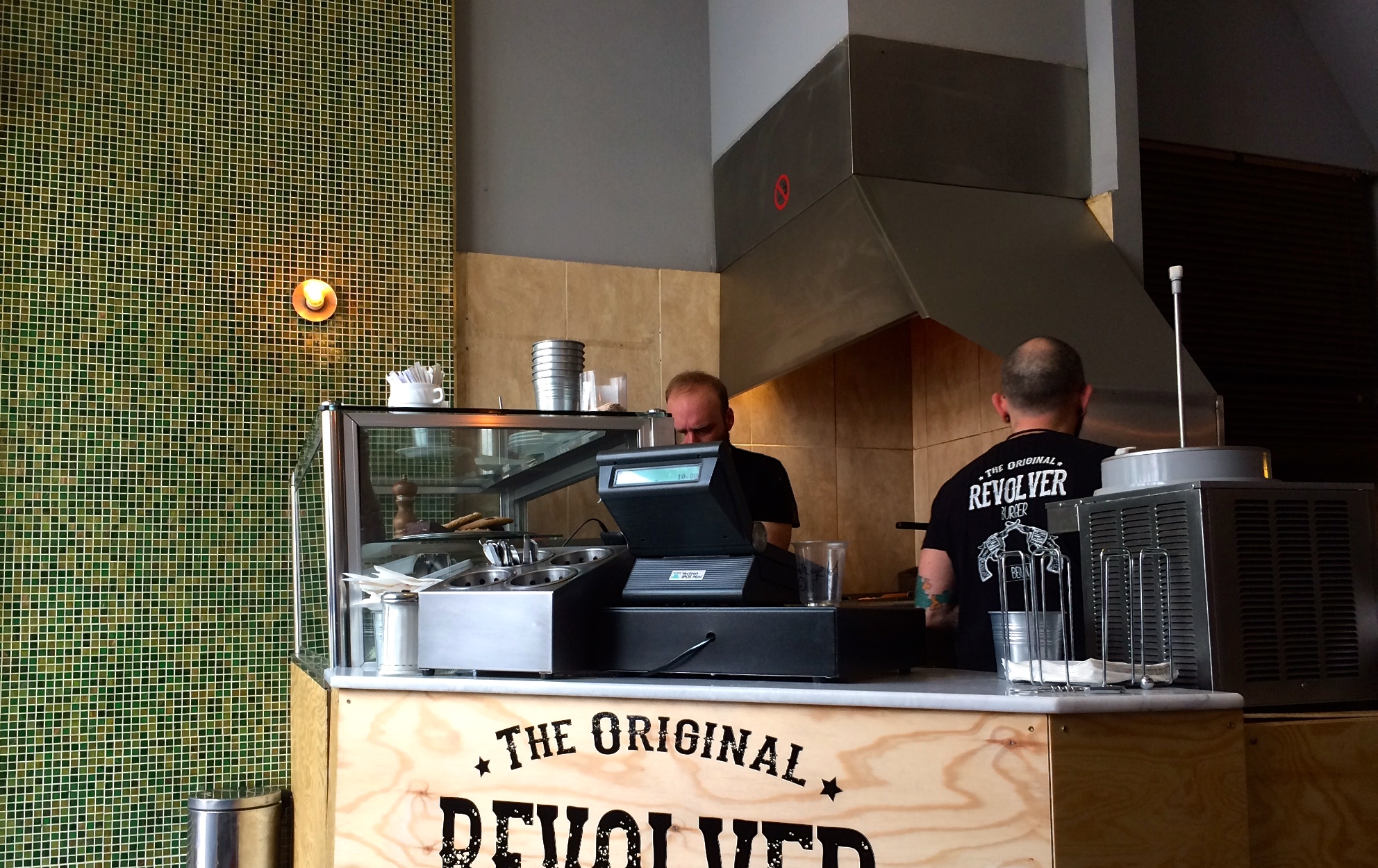 Der Laden ist mit 32 Plätzen drinnen und ungefähr 45 Plätzen draußen nicht gerade groß. Die dunkle Holzvertäfelung, die freigelegte Backsteinwand und die gedämpfte Beleuchtung machen ihn allerdings sehr gemütlich.