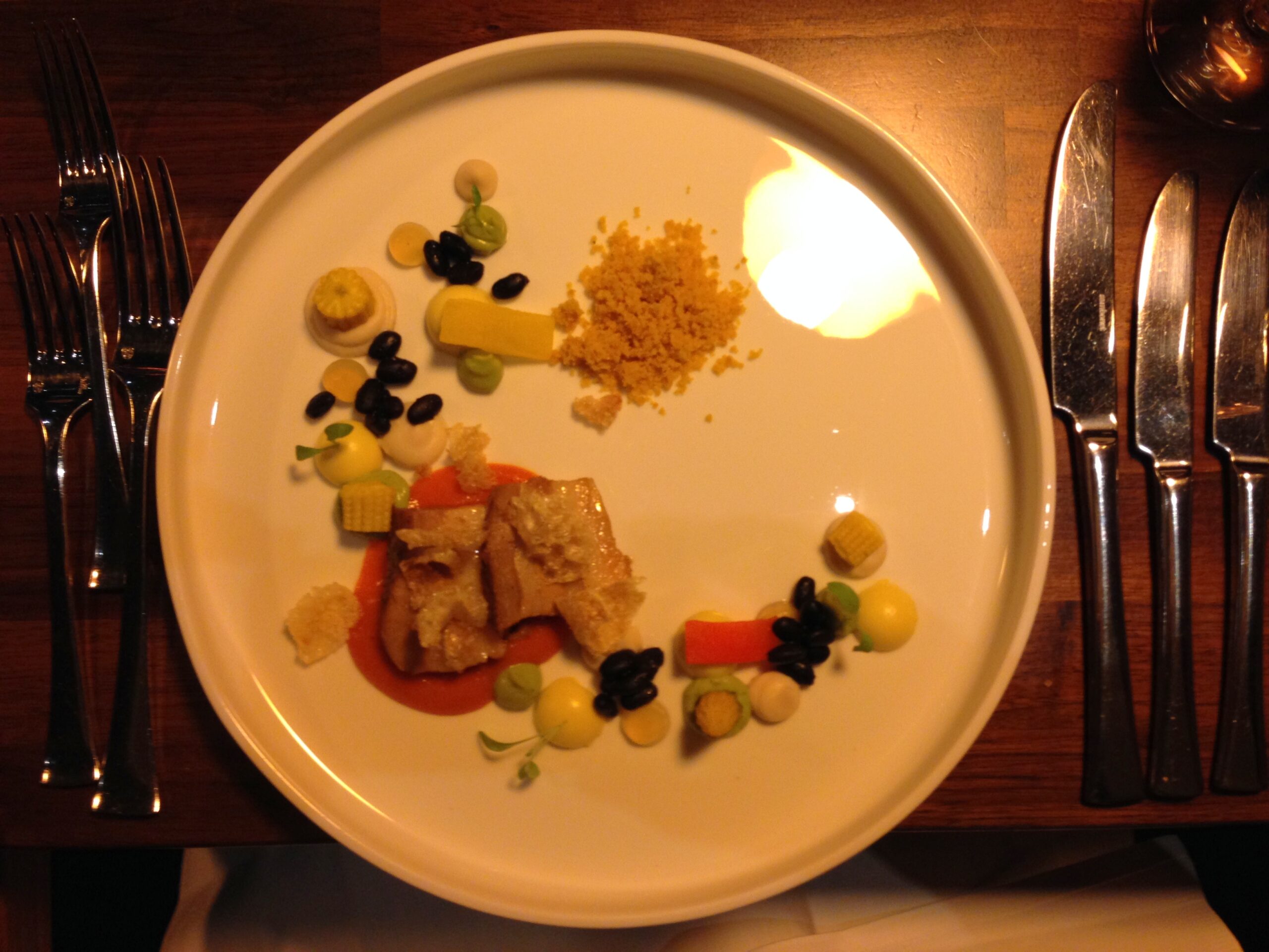 Wochenmitte, 19 Uhr, es ist noch leer im Mitterhofer. Die Bedienung zündet gerade die Kerzen auf den Tischen an, während die ersten Gäste durch die Doppeltüren den hellen Gastraum betreten. Drinnen hat der Frühling schon ein bisschen mehr als draußen in Form von gelben Tulpen Einzug gehalten. Klare Linien paaren sich mit Alpenromantik – kein Schnick-Schnack und doch erkennt man gleich in welcher kulinarischen Ecke man sich befindet.