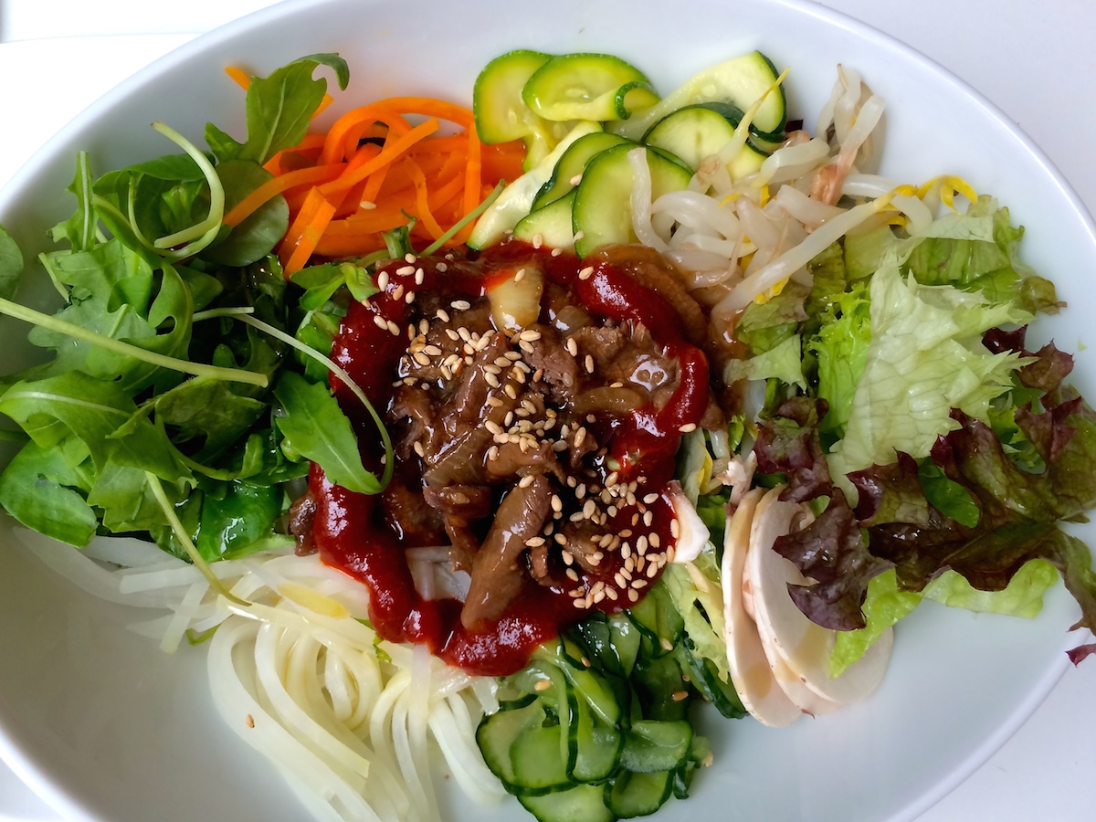 Wirklich viele Ess- bzw. Sitzgelegenheiten gibt es nicht, aber das macht den Burgerhungrigen nichts.