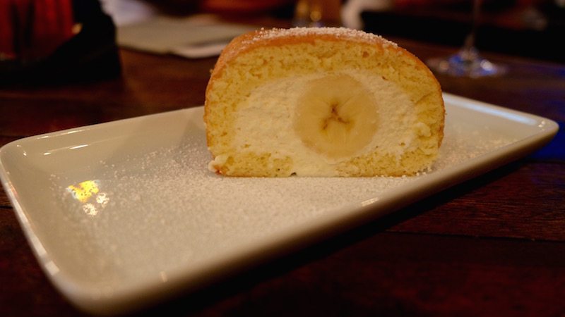 Das Dessert namens Seoul Banana sieht aus wie diese Bisquit-Kuchenrollen aus der Tiefkühltruhe – aber auch wenn es rein äußerlich eine gewisse Ähnlichkeit gibt, geschmacklich sind die beiden Desserts Lichtjahre voneinander entfernt. Die im Gogogi ist außerdem mit einer Mascarpone-Creme… mjam.