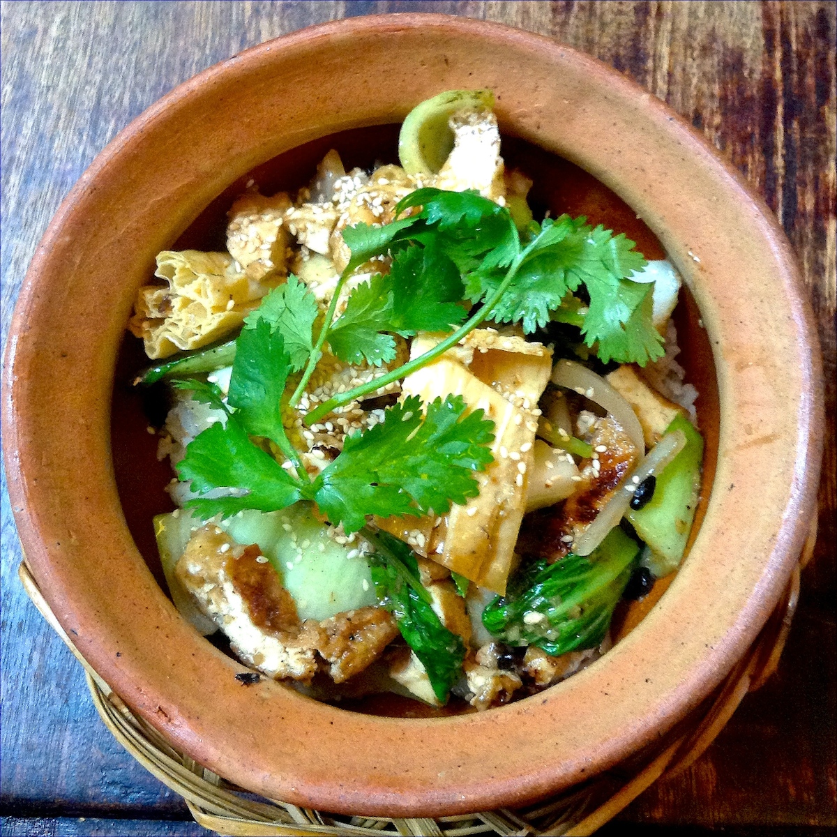Die Speisekarte, die übrigens mit den typischen Stoffen ummandelt wurde, ist eigentlich sehr übersichtlich, was aber eher für als gegen das ChenChe spricht. Es gibt Suppen und Reis-/Nudelgerichte, die aber ebenso wie die Einrichtung, mit vielen kleinen Besonderheiten gespickt sind. Ich liebe es ja Neues zu entdecken und so bin ich hier auf die tollen schwarzen fermentierten Sojabohnen gestoßen, die in einem Gericht mit dabei waren. Es gibt immer eine fleischlose Alternative mit Tofu, sodass auch Vegetarier und Veganer hier sehr gut essen können. Der Mittagstisch wechselt fast wöchentlich und ist meist günstiger als abends. Ein kleiner Tipp: Zum Lunch ist es ratsam zwischen 12.30 – 13.00 Uhr dort aufzuschlagen, sonst könnte es eng werden. Immer mal wieder entsteht eine kleine Schlange im Eingangsbereich.