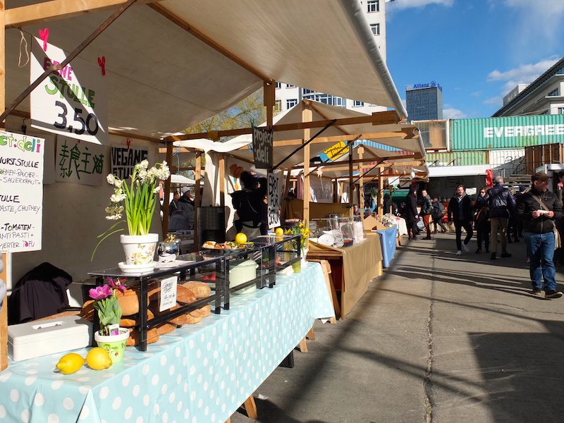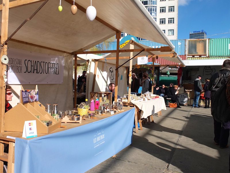 Das Event ist dieses Mal auf der Freifläche der Arena, direkt an der Spree. Ihr könnt also schön am Wasser chillen, essen und trinken mit Blick auf den Fernsehturm. Der Eingang ist daher auch nicht, wie beim letzten Mal, das Badeschiff, sondern die Eichenstraße. Achtet auf die Schilder, es ist im Prinzip nur einmal ums Eck. Etwas gewöhnungsbedürftig ist die Beschallung der Hoppetosse – einem alten Schiff, das partytauglich umfunktioniert wurde. Besucher, die das Schiffchen nicht kannten, bestaunten zunächst auch erstmal das Schiff, bevor sie über den Markt schlenderten ;)